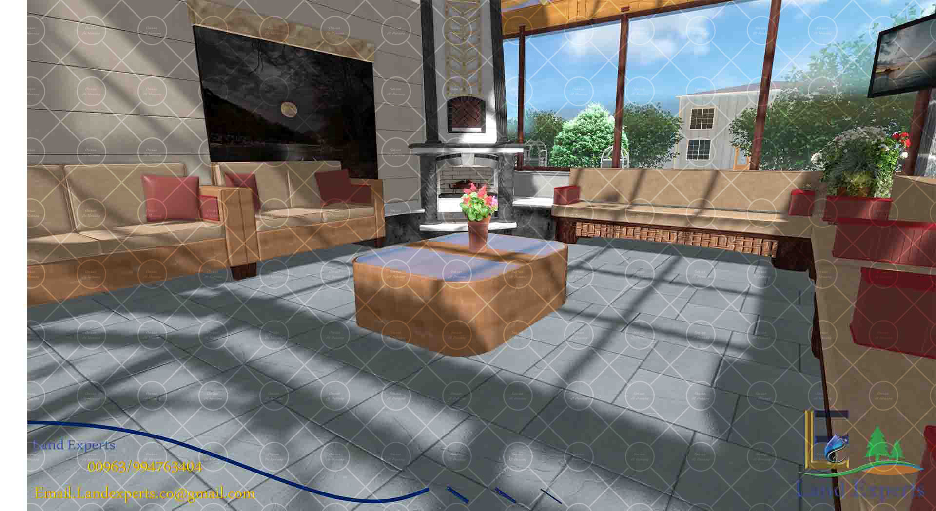 المساحة التصميمية : للحديقة 216 متر مربع & التراس الخارجي 50 متر مربع