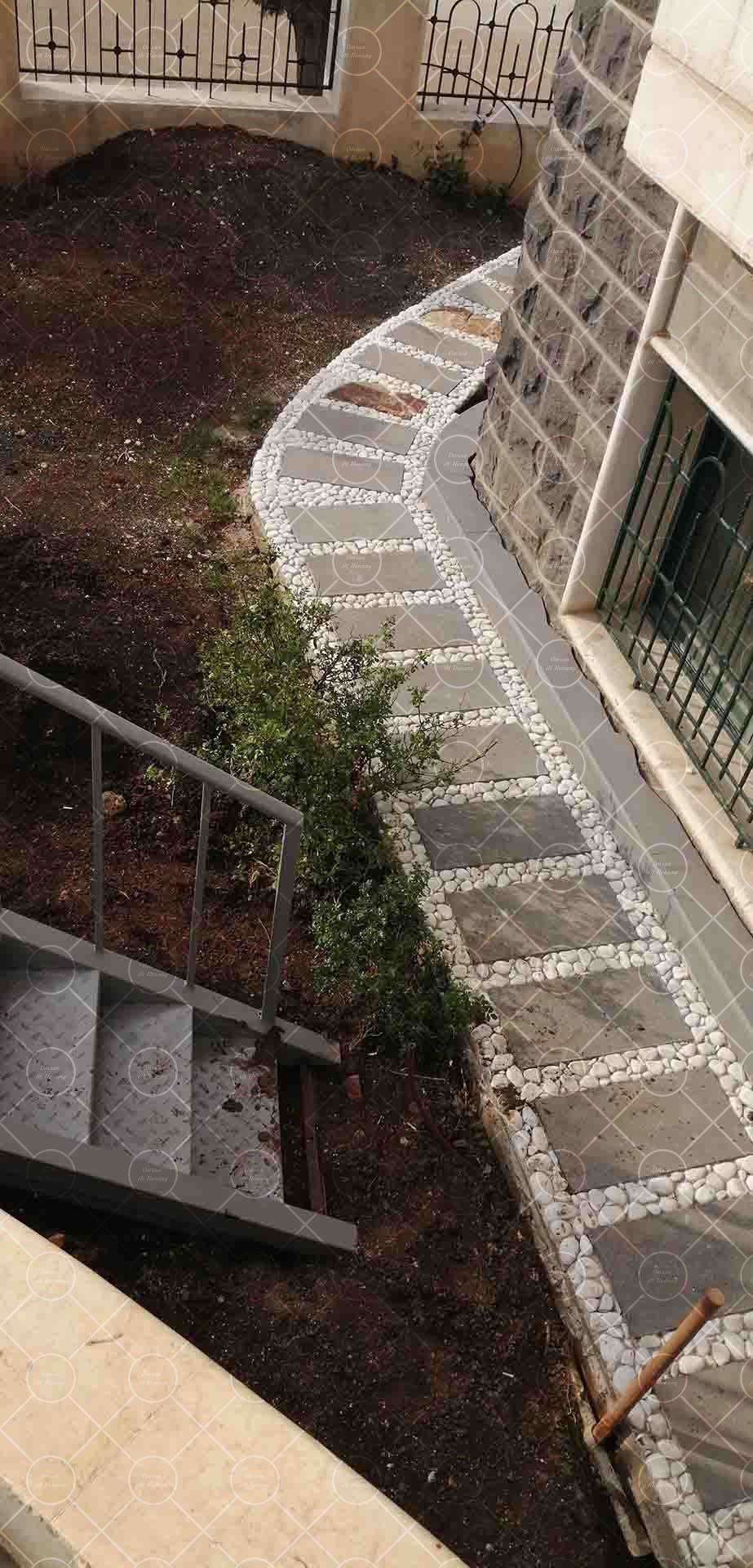 إجراء أعمال الصيانة اللازمة وإعادة تصميم جديد للموقع بما يناسب تصميم الفيلا ويحقق أهداف المالك فتم تصميم حديقة مناسبة وتمييز المدخل الخاص بالفيلا بطريقة فنية وإضفاء لمسة فنية من النباتات مع الإضاءة اللازمة.